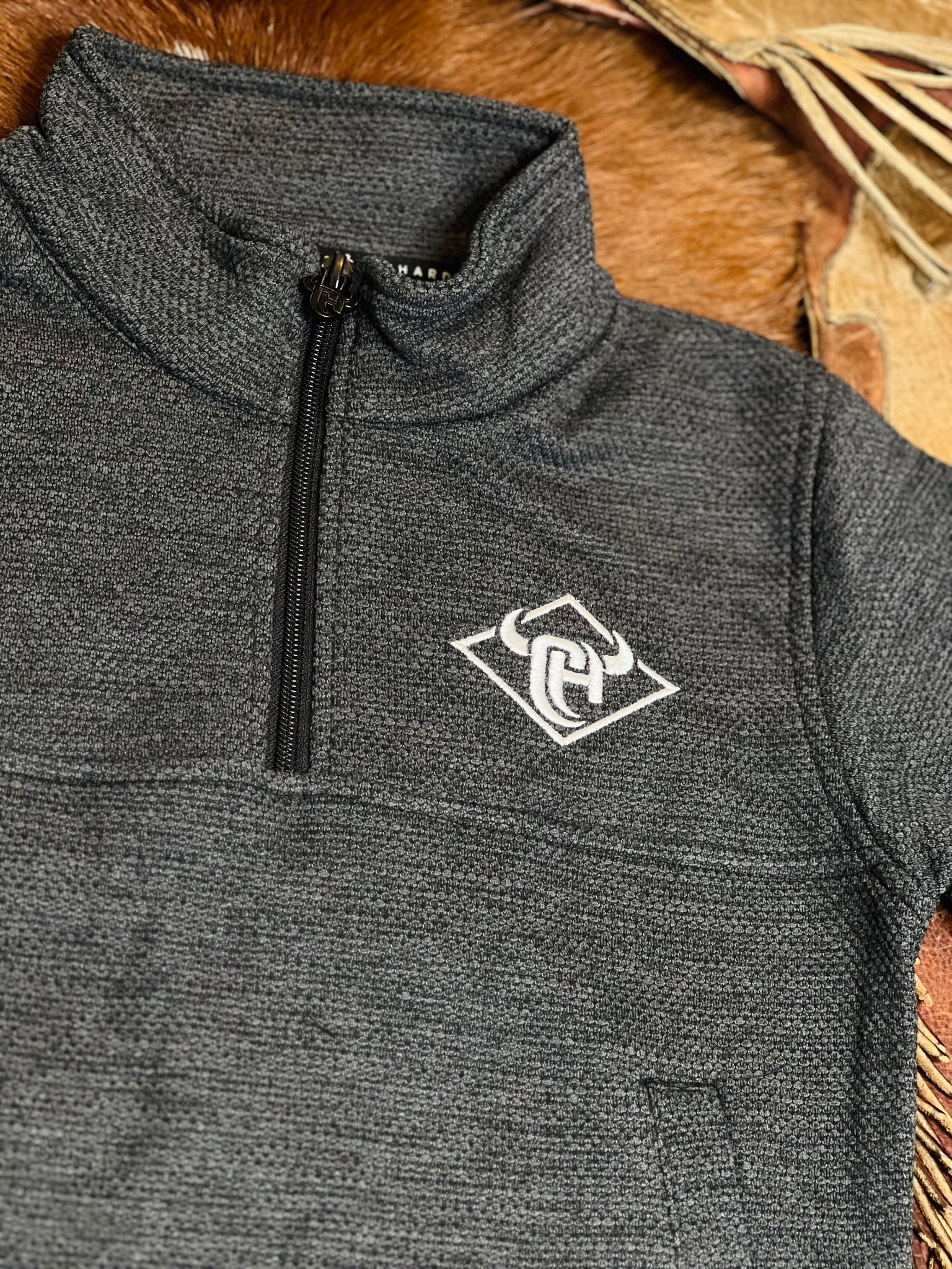 Grey knobby fleece quarter zip. Complete with a front kangaroo pocket .