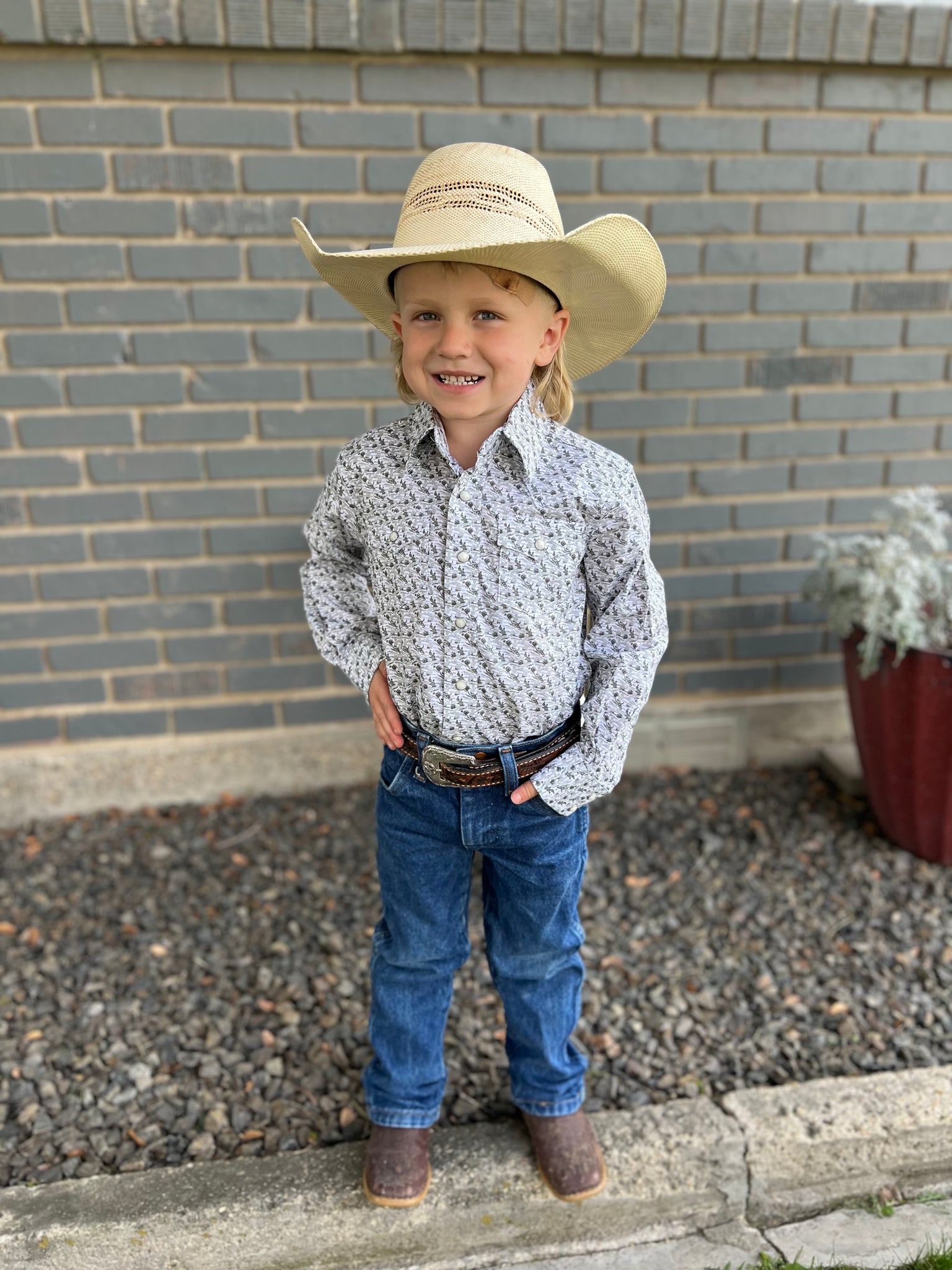 Western plaid long sleeve pearl snap. 0-3M to 24M come in a bodysuit style.