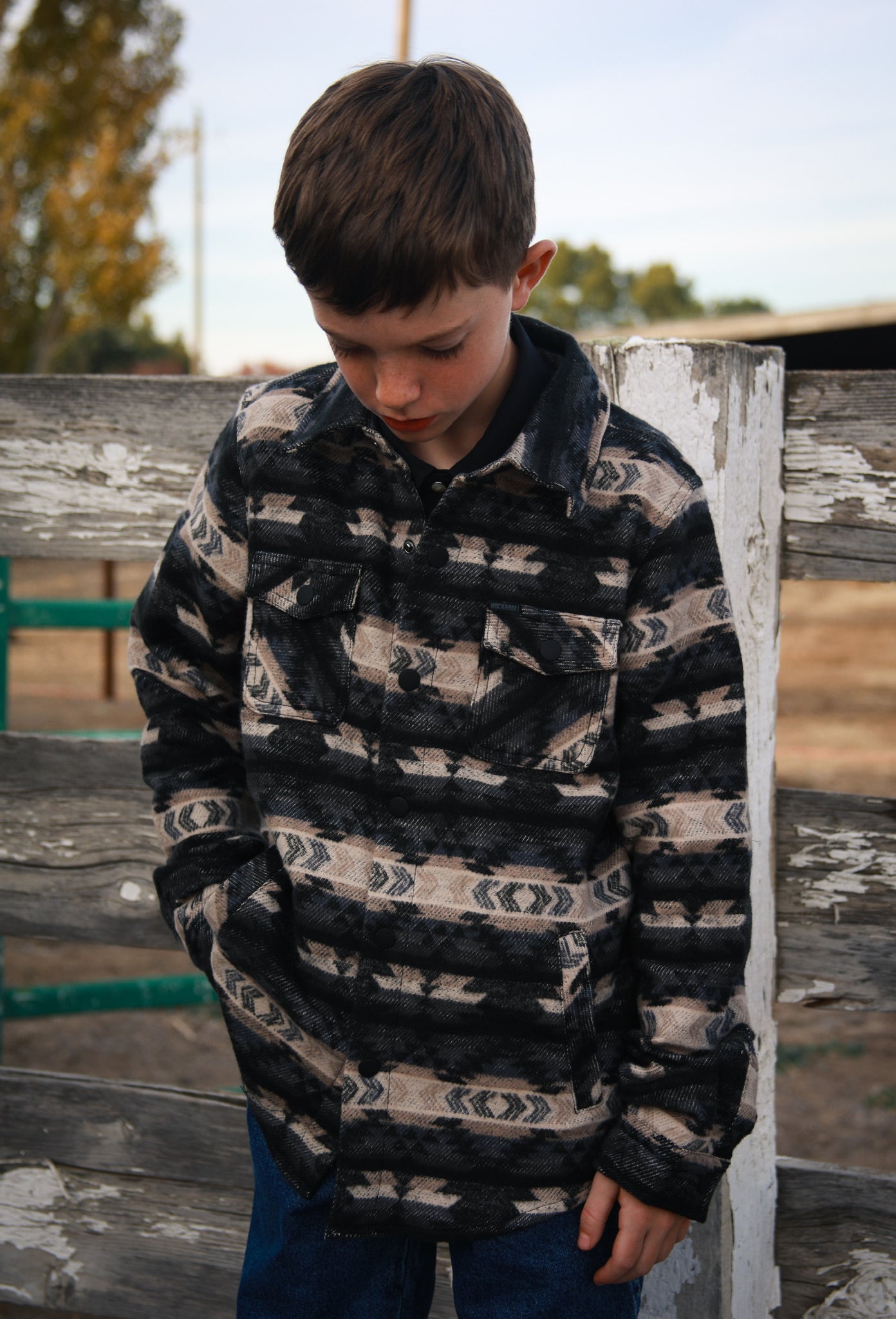 Soft Shacket with aztec print. Snap button closures. Designed by Rock N Roll Denim.
