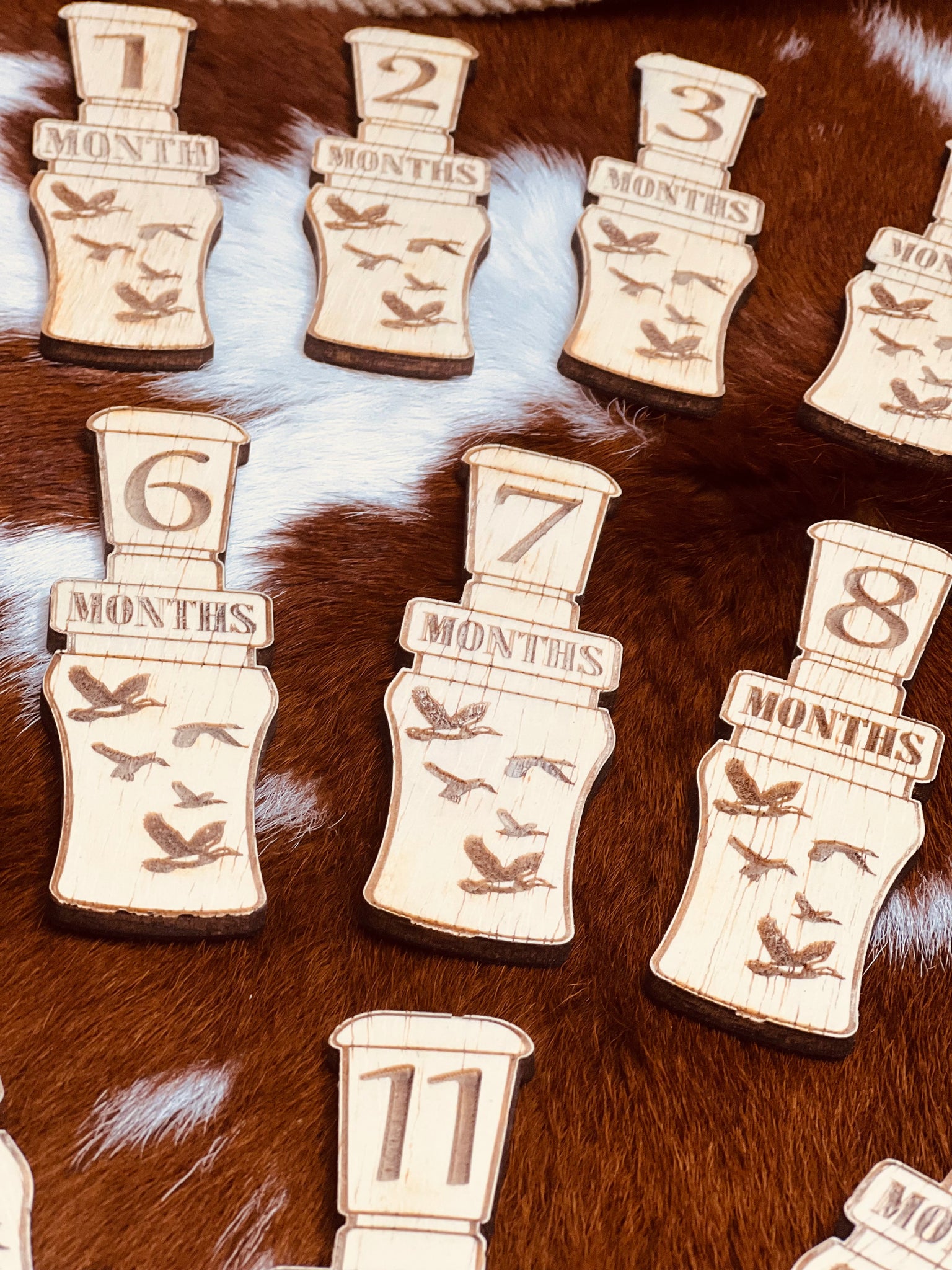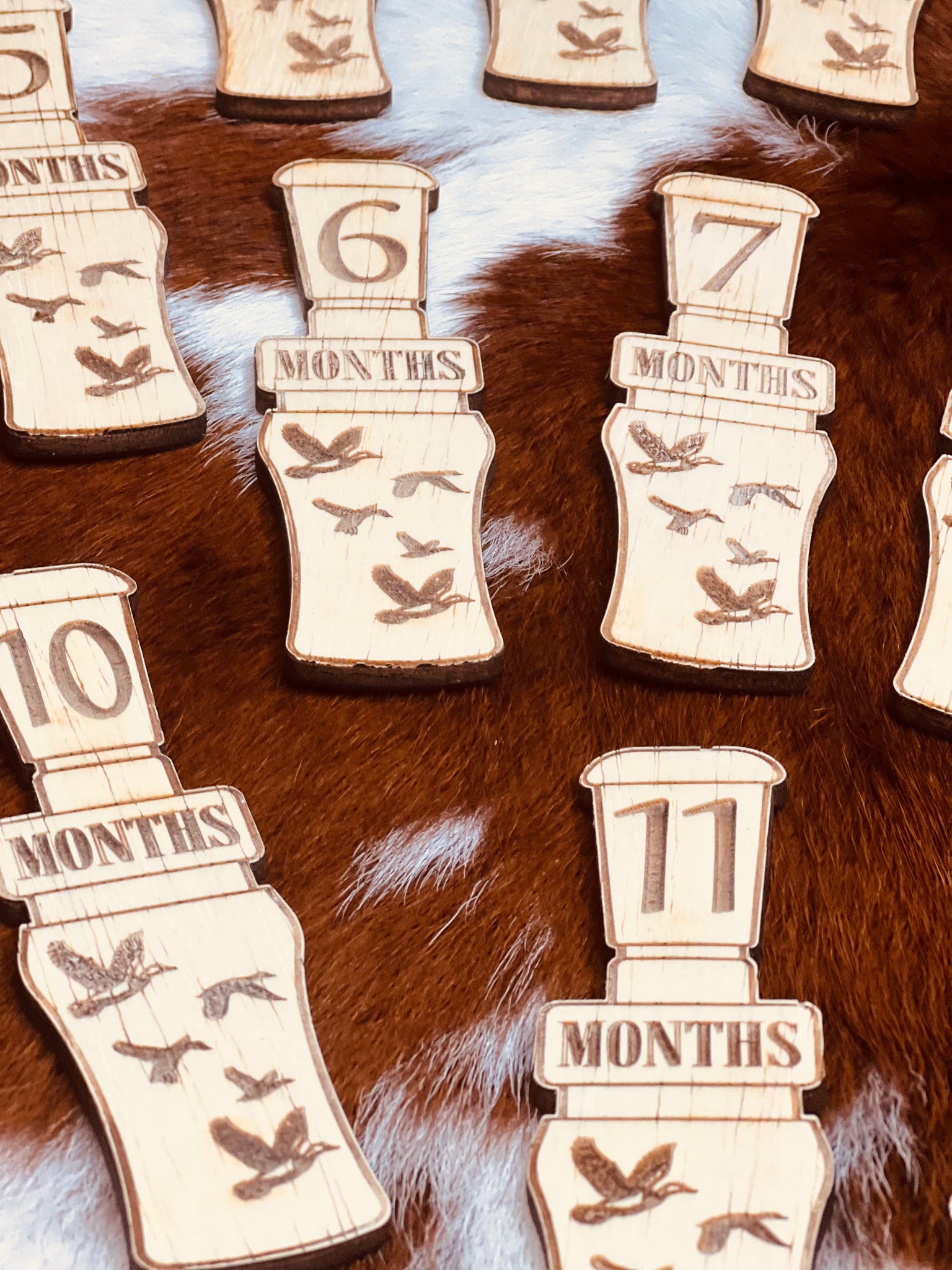 The cutest duck call monthly milestones to help mark and remember your baby’s growth in their pictures.
