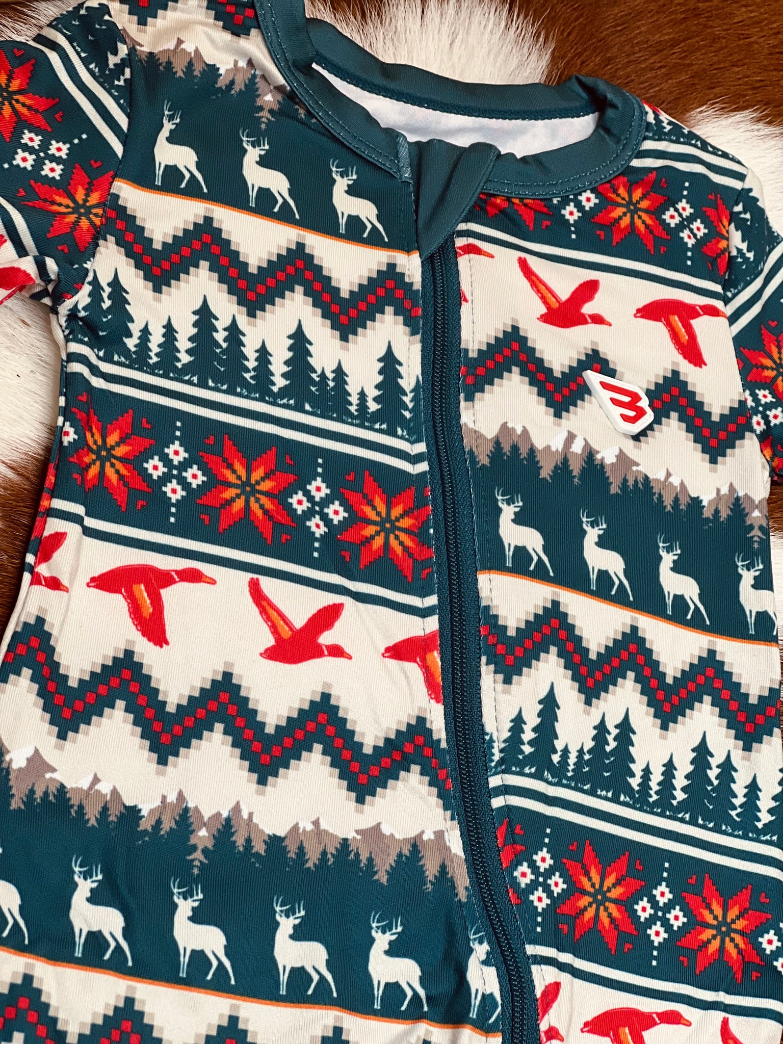 The perfect pjs to take your little one hunting with you, or even out to the grocery store! Comes in the classic duck and deer pattern with two way zippers & foldable hand covers and feet covers.