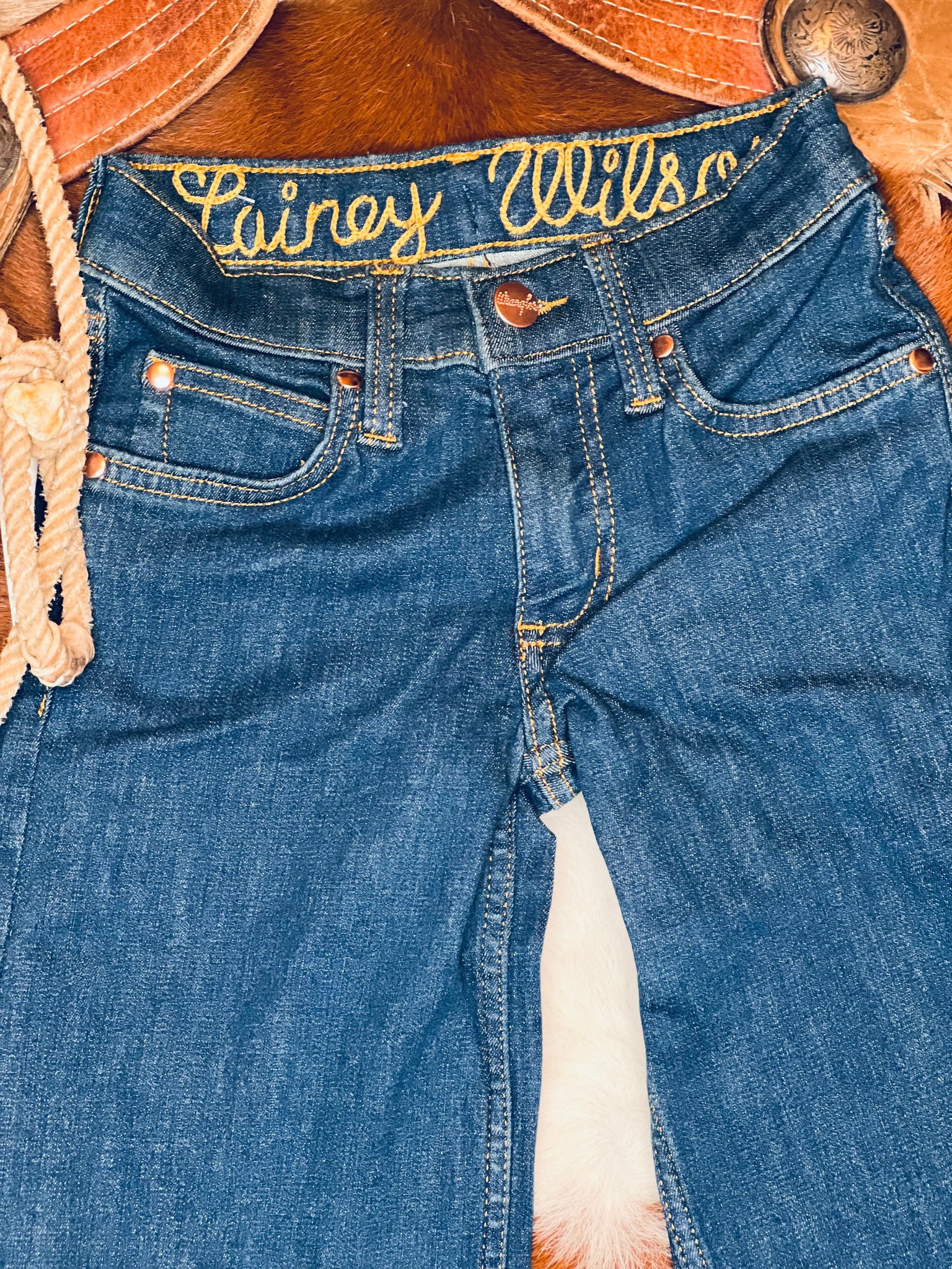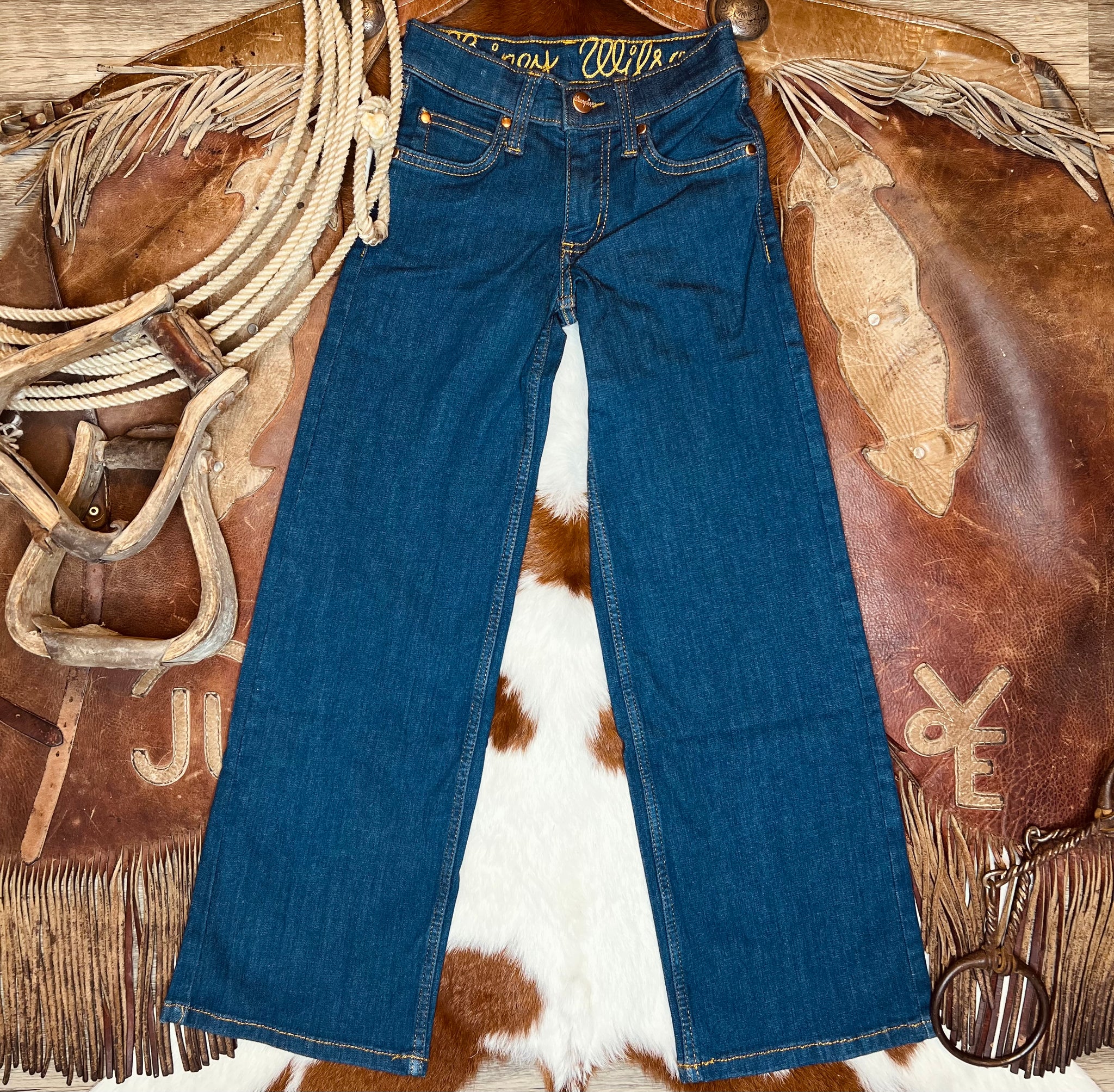 These Lainey Wilson Wide Leg Pants by Wrangler are every tween’s dream. Perfect blue wash with waist band draw strings to cinch perfectly on your kids waist!