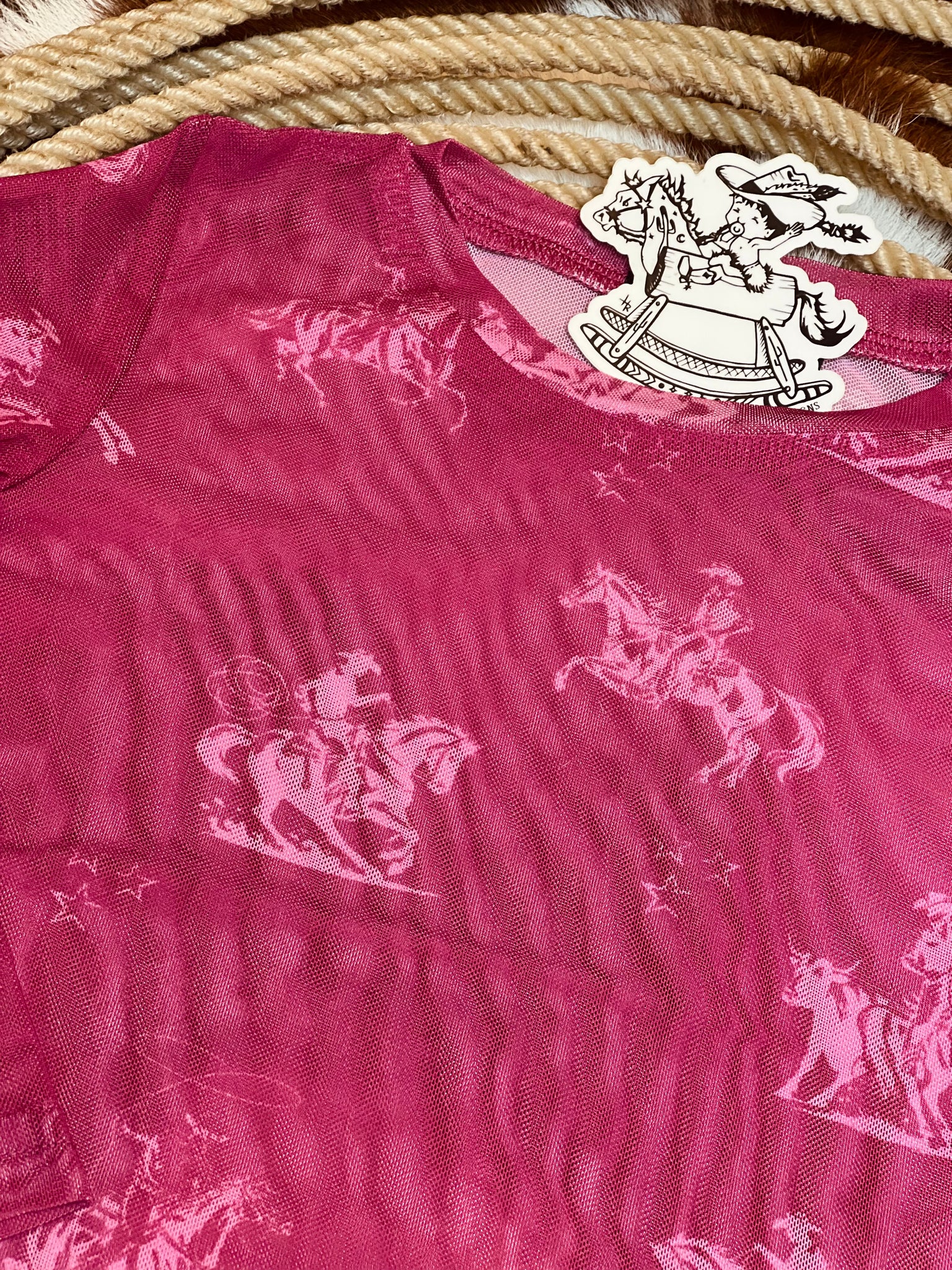 Western print mesh top for your little cowgirl. Perfect for layering under t shirts and dresses!