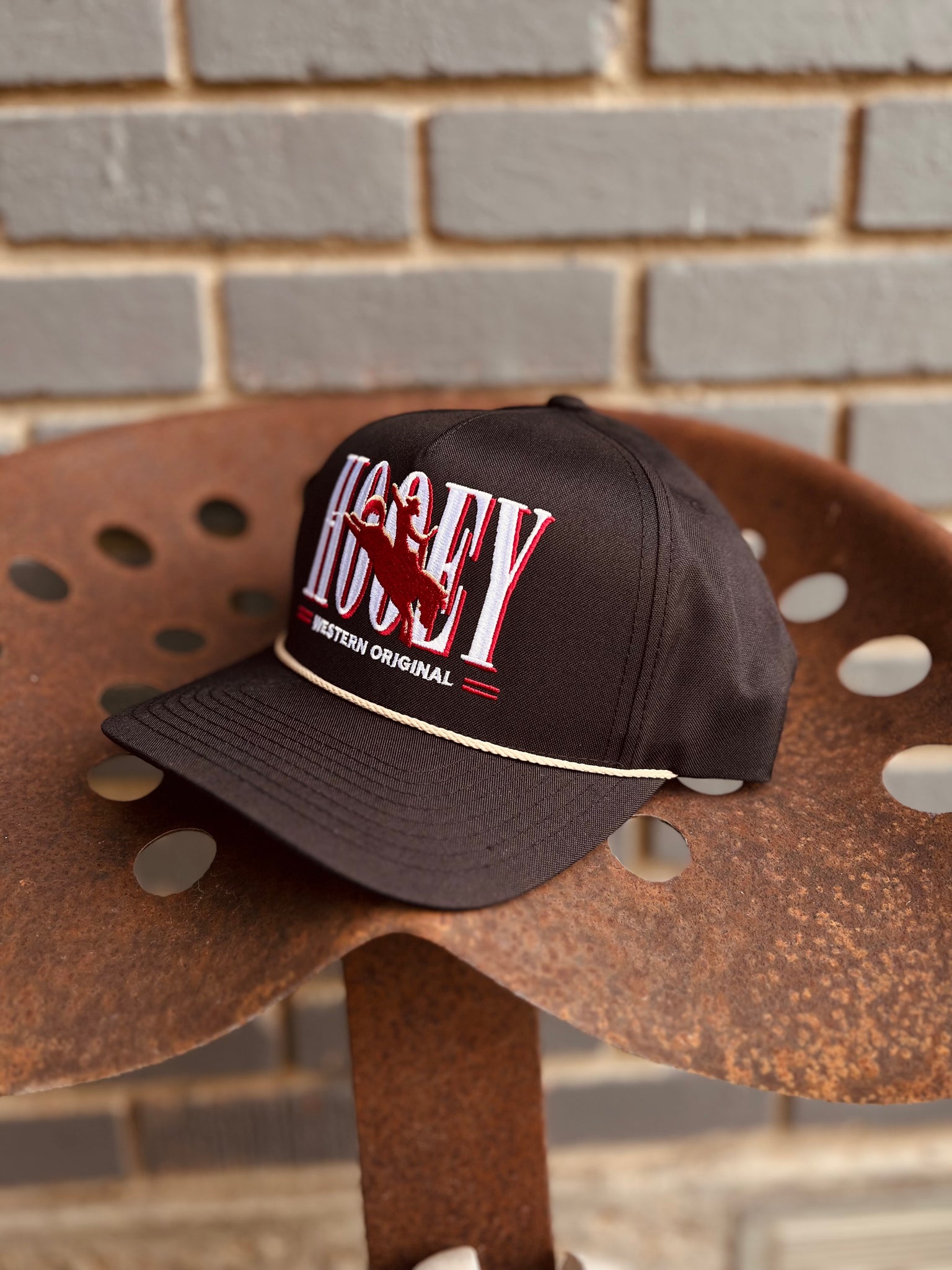 The Hooey brand snap back. Complete with an embroidered hooey logo and rope across the brim for detail.